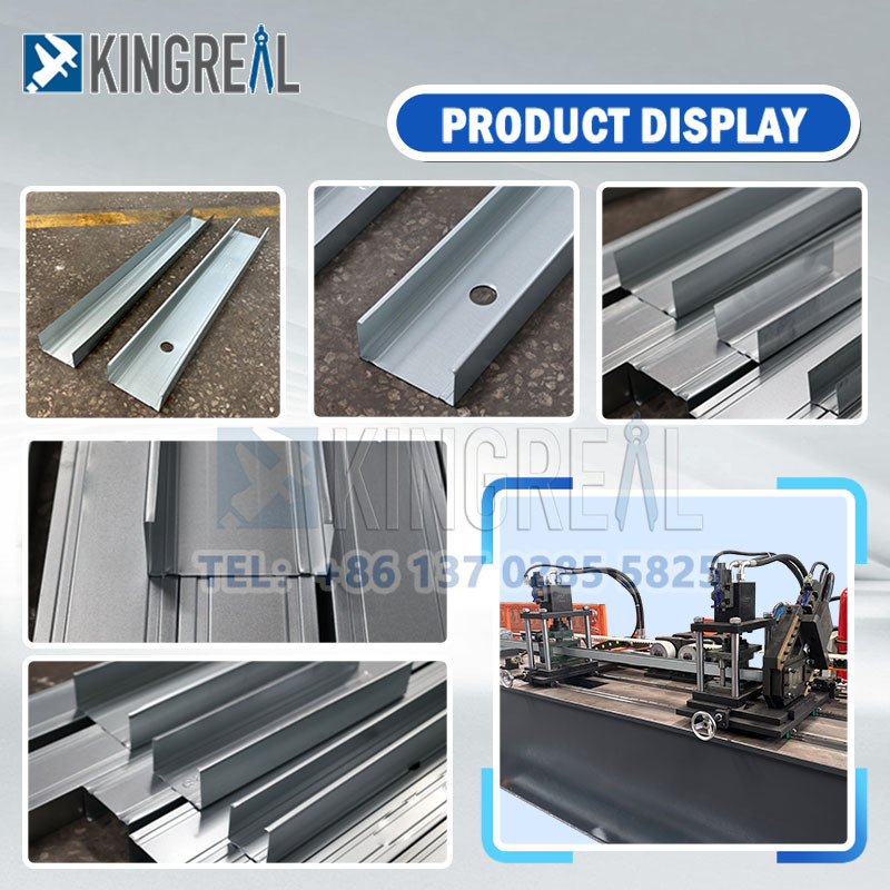 Mesin stud dan track logam yang dilengkapi dengan sistem pelubangan dan pemotongan terbang dapat mencapai pelubangan dan pemotongan berkecepatan tinggi, tanpa perlu berhenti selama proses pelubangan dan pemotongan. Selain itu, KINGREAL dapat menyesuaikan cetakan pelubangan sesuai dengan gambar yang diberikan oleh pelanggan, sehingga produk jadi yang dihasilkan dapat memenuhi persyaratan desain spesifik.