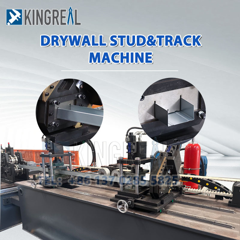 Mesin pembuat profil drywall KINGREAL dapat memproduksi stud dan track logam CW UW, material struktur rangka yang digunakan dalam sistem dinding partisi bangunan untuk menopang dan memperbaiki material dinding. Mesin pembuat profil drywall ini biasanya menggunakan gulungan galvanis setebal 0,35-1,0MM atau gulungan berlapis rol setebal 0,35-1,0MM sebagai bahan baku, dan dapat memproduksi profil drywall dengan lebar mulai dari 40mm hingga 150mm.